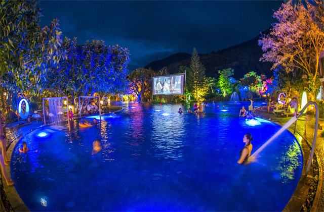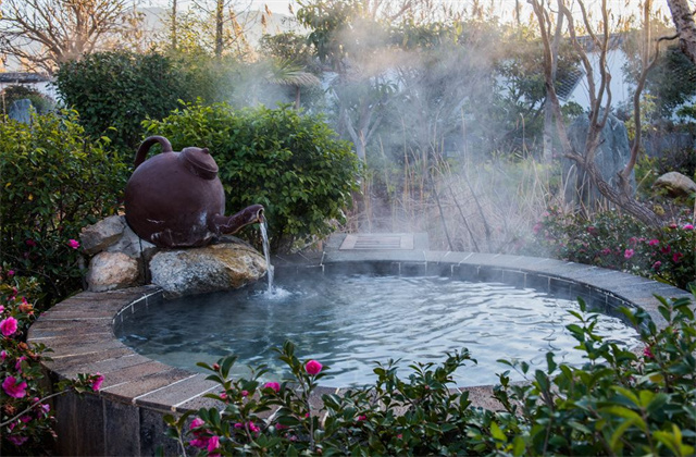 30多個特色溫泉池,星星點點散落在花草叢林間,泉涌自然,水霧氤氳,萬物若隱若現(xiàn),置身其間,疑是墜落仙境。