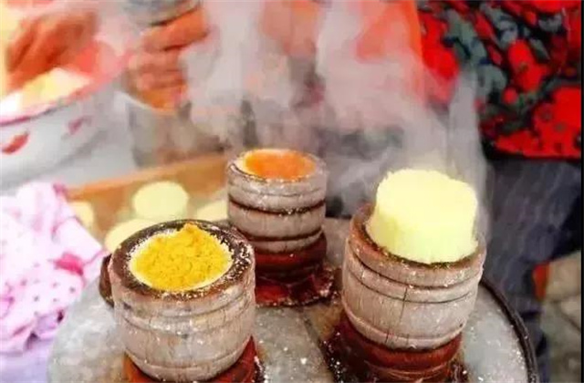 南澗鍋巴油粉,是大理白族自治州無量山彝族民間獨(dú)特的風(fēng)味小吃。用當(dāng)?shù)丶儼咨愣狗劬贫?,南澗油粉特色不僅在鍋巴上,佐料亦尤其重要,主要配以南澗特制面醬、木瓜醋、辣子油等多種佐料,酸辣爽口。