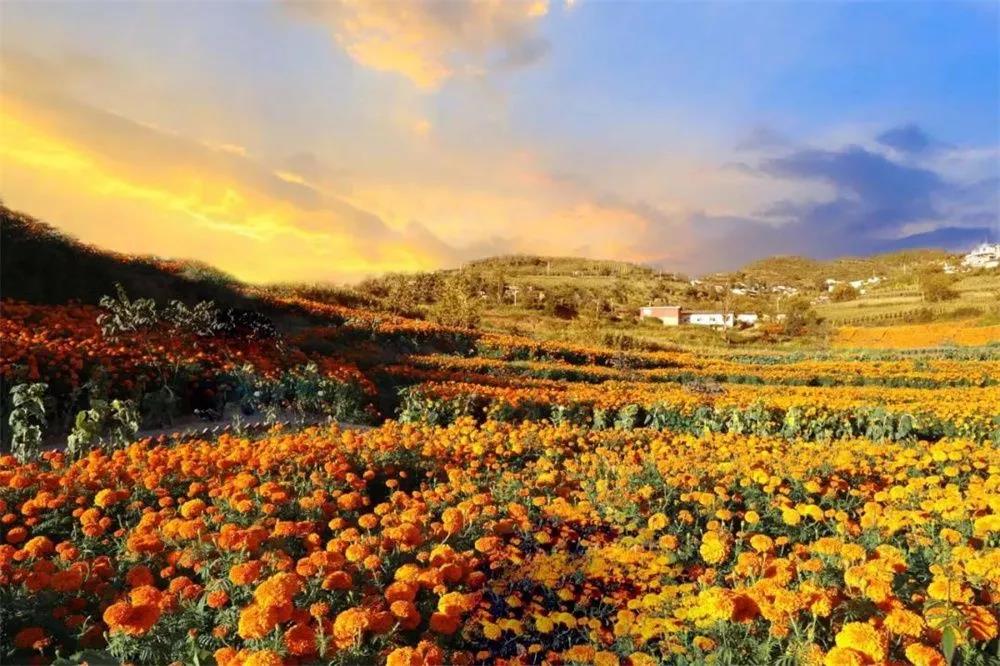 正是秋收好時(shí)節(jié),大理劍川漫山遍野的萬壽菊花田正上演一場(chǎng)忙碌而有序的豐收競(jìng)賽,采菊人在花海里來回穿梭,收獲的喜悅、綻放出的幸福笑容構(gòu)成了一幅幅美好的畫面。置于花海中,萬壽菊的花瓣重重疊疊,花朵盡顯妖嬈,姿態(tài)萬千,正是人與花共赴的一場(chǎng)豐收盛宴。