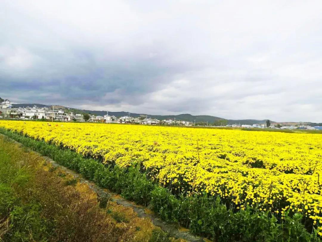 秋菊有佳色,裛露掇其英。古時(shí)便有陶淵明采菊為食的例子,如今大理的黃菊也迎著秋風(fēng)盛放。陽光穿過薄霧,滿山滿地都是璀璨的花朵。花兒幾朵為一簇,一根莖蔓上有無數(shù)個(gè)一簇。莖蔓相纏,編織出一片黃色的云霧。黃菊淡淡的藥香在空氣里徘徊,解除了在秋日中勞作的人們的疲憊之感。