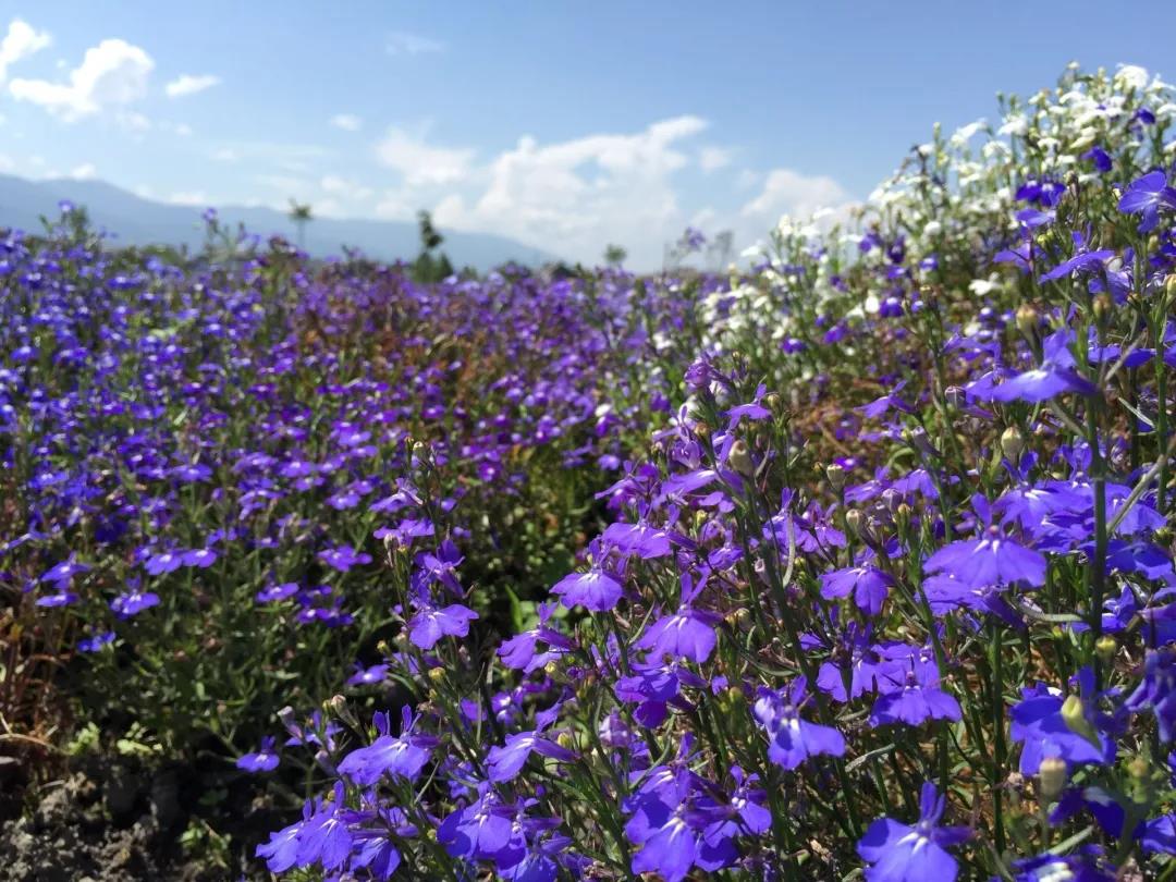 如同彩虹每種色彩之間都有暈染的過渡一般,大理云上村莊的繡球花田有深藍(lán)、有淺藍(lán)、有紫藍(lán)、有粉藍(lán),花色多變,因?yàn)槊恳恍K地微妙的酸堿變化會(huì)呈現(xiàn)出不同的色彩。種過繡球的人都知道,要讓繡球呈現(xiàn)出一定的顏色幾乎不可能,渡邊淳一由此寫出小說《紫陽花日記》,描述中年夫妻的情感如同紫陽花一般難以捉摸,這里的紫陽花指的就是繡球花。這種不確定性,也就是它的迷人之處吧。一眼望去,眼前頭頂藍(lán)得滴水的花朵映入眼簾,聊解了秋日煩躁的心情。