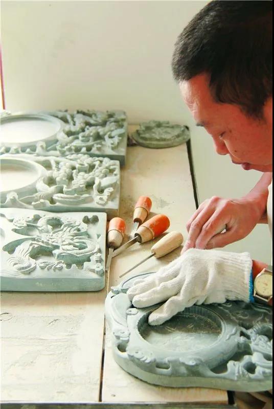 出生在制硯世家的張躍堂耳濡目染,從小就對(duì)工藝十分感興趣,放學(xué)回家畫圖畫,為制硯打下堅(jiān)實(shí)基礎(chǔ),后來他用5年時(shí)間便“出師”了。以50年為一代算來,鳳羽硯傳到張躍堂已經(jīng)是第8代,至今已有300多年的歷史。