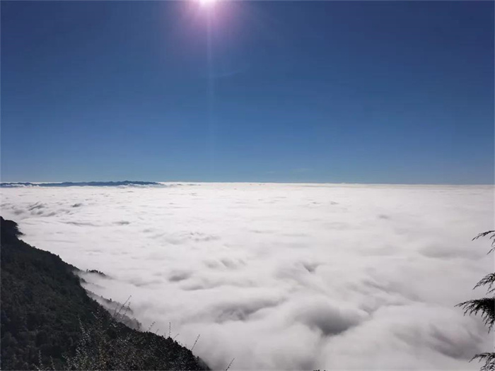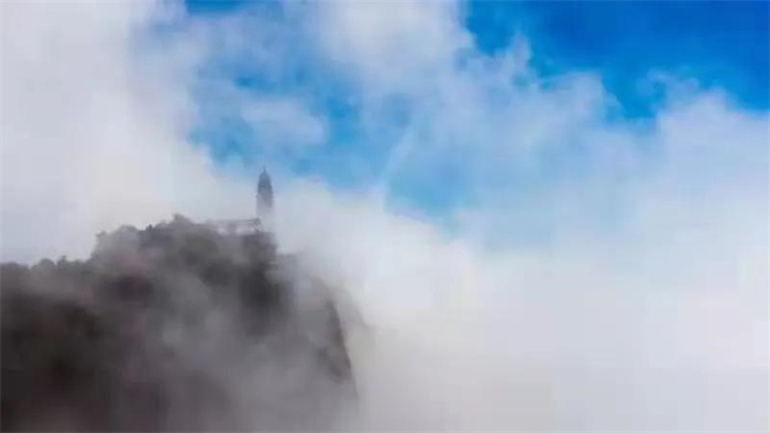 “云海翻涌騰細浪,濃霧繚繞系群山”
