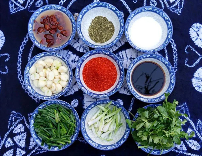 以酸精(檸檬精)、紅辣椒面、青蒜苗、草果粉、洋芋等為主要原料,海稍魚采用獨(dú)特的烹飪技藝加工而成。