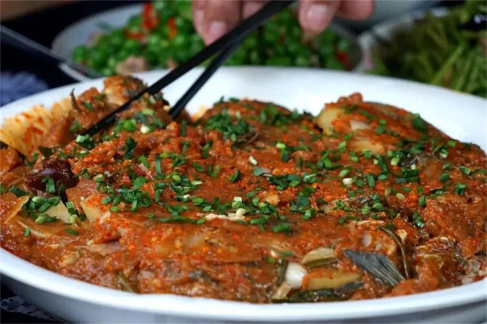 大理酸辣魚,味美鮮香,酸木瓜的酸夾雜著其特有的果香,干辣椒面與糟辣椒搭配而成的辣,酸辣可口,讓人百嘗不厭,是白族人家都喜歡的一道宴客菜。