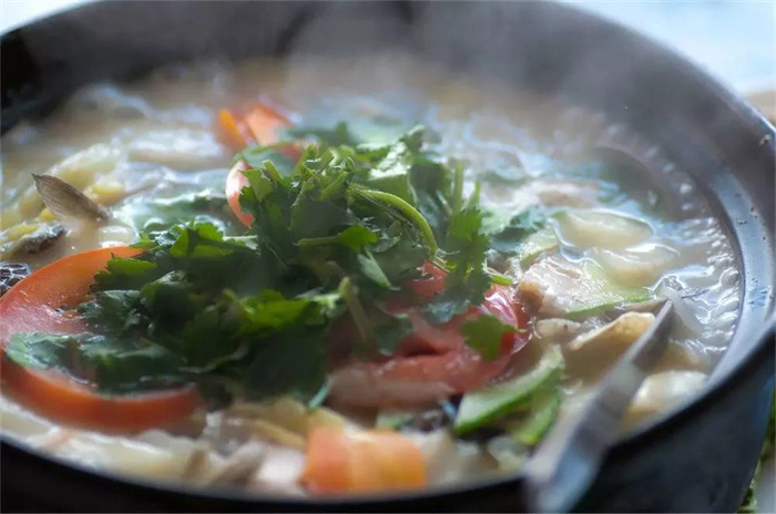 砂鍋魚想必大家都很熟悉,這可是大理地區(qū)一道傳統(tǒng)的特色名菜。以大理洱海特產(chǎn)黃殼魚為主料,砂鍋魚中還加入海參、土魷魚、干蝦米、鮮豬肝、豬小排、豬里脊、豬蹄筋等眾多鮮美食材。利用祥云特制砂鍋進(jìn)行烹煮,砂鍋魚清香鮮嫩,營養(yǎng)滋補(bǔ)。吃著砂鍋魚,再聽聽其背后“山海酒家”的故事,真是一場味蕾的盛宴。