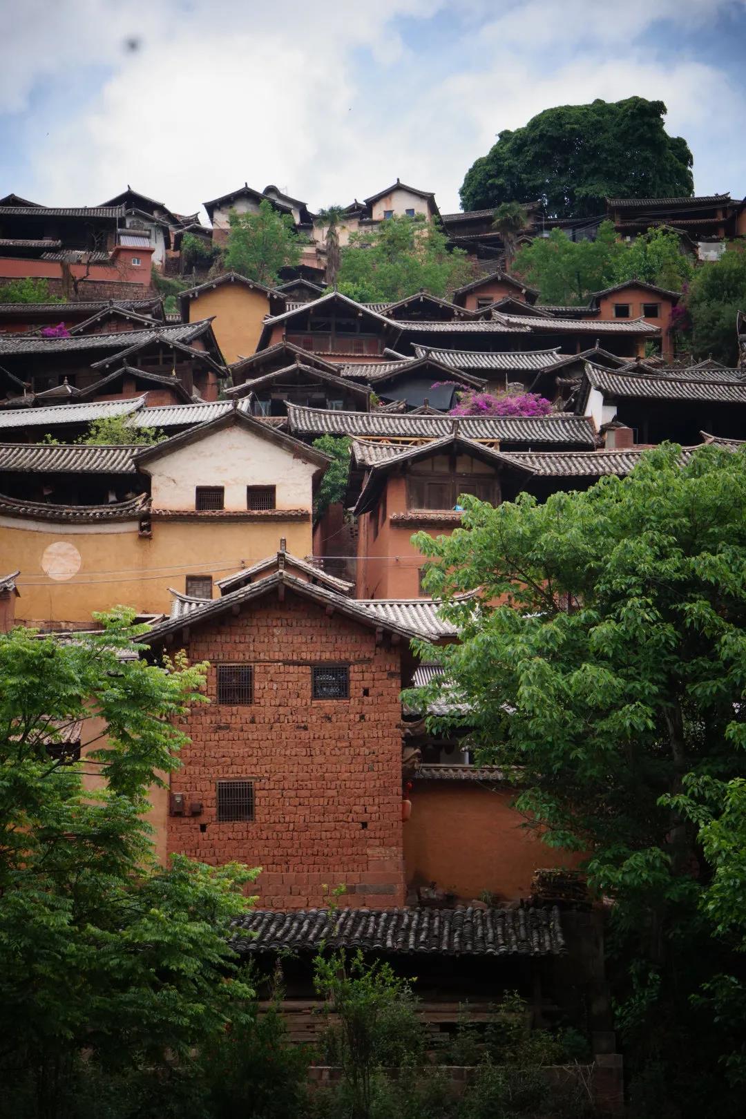 諾鄧有著滇西最集中的明清古建筑群和明清文化遺存,一百多座古代民居院落,依山而建,從山頂?shù)缴侥_,層層疊疊的房子就像掛在半空中一樣。走在村里磨得锃亮的石板路上,環(huán)顧古老的建筑,你會(huì)忍不住感嘆歷史似乎在這里停滯。順著陡峭的青石板臺(tái)階踏入這座古村,平靜祥和的氣息鋪面而來(lái)。隨意走進(jìn)一戶民居,一個(gè)個(gè)金燦燦的火腿懸掛在屋梁上,引得人垂涎欲滴。