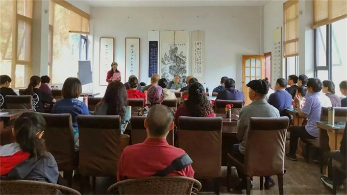 “李元陽的時(shí)代離我們遠(yuǎn)去久矣,但大理的山水自然還在,讀書人的文脈還在。”2015年,當(dāng)陽和茶場(chǎng)旁的一片殘?jiān)衔菝媾R轉(zhuǎn)型改建時(shí),李云珠心里的種子終于發(fā)芽,“建一所書院,名字就叫元陽書院”的想法幾乎就在不假思索中落地。“元陽國學(xué)館”“書法傳習(xí)館”“大理市文藝創(chuàng)作基地”“大理老年大學(xué)元陽書院分?!毕嗬^在此掛牌。建院以來,元陽書院持續(xù)舉辦學(xué)術(shù)研討、經(jīng)典誦讀、書法、繪畫交流等活動(dòng),聘請(qǐng)大理大學(xué)退休教師及專業(yè)文化人士每月開辦文津講壇,公眾可免費(fèi)參與。