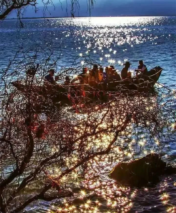 她是美麗的,毋庸置疑。清晨,她的波瀾就是她的名片,金燦燦的,像是甜蜜的心事。點(diǎn)點(diǎn)漁舟就是她的鞋子,穿著它們,她正去赴新一天的約會(huì)。漁人們帶著鸕鶿捕魚,這鳥兒不僅是捕魚的能手,還十分的有靈性。它們和漁人結(jié)伴而行,配合默契,它們就像是自由的精靈,跳著芭蕾,輕舞在碧藍(lán)的海面。